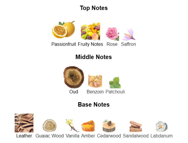 Azzure Oud by French Avenue is a Oriental fragrance for men. Inspired by Maison Crivelli's Oud Maracuja. This is a new fragrance. Azzure Oud was launched in 2024. Top notes are Passionfruit, Fruity Notes, Rose and Saffron; middle notes are Oud, Benzoin and Patchouli; base notes are Leather, Guaiac Wood, Vanilla, Amber, Cedarwood, Sandalwood and Labdanum.