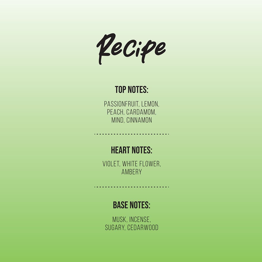 Top Notes: Passionfruit, Lemon, Peach, Cardamom, Mint, Cinnamon